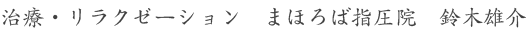 また、池袋・要町を拠点とする当院では、辛い症状緩和のために、指圧マッサージでの治療を行っておりますが、症状改善目的の方だけでなく、リラックス・リフレッシュ目的の方にも気軽に立ち寄っていただける店にしたいとの思いから、「治療・リラクゼーション」の副題をつけました。